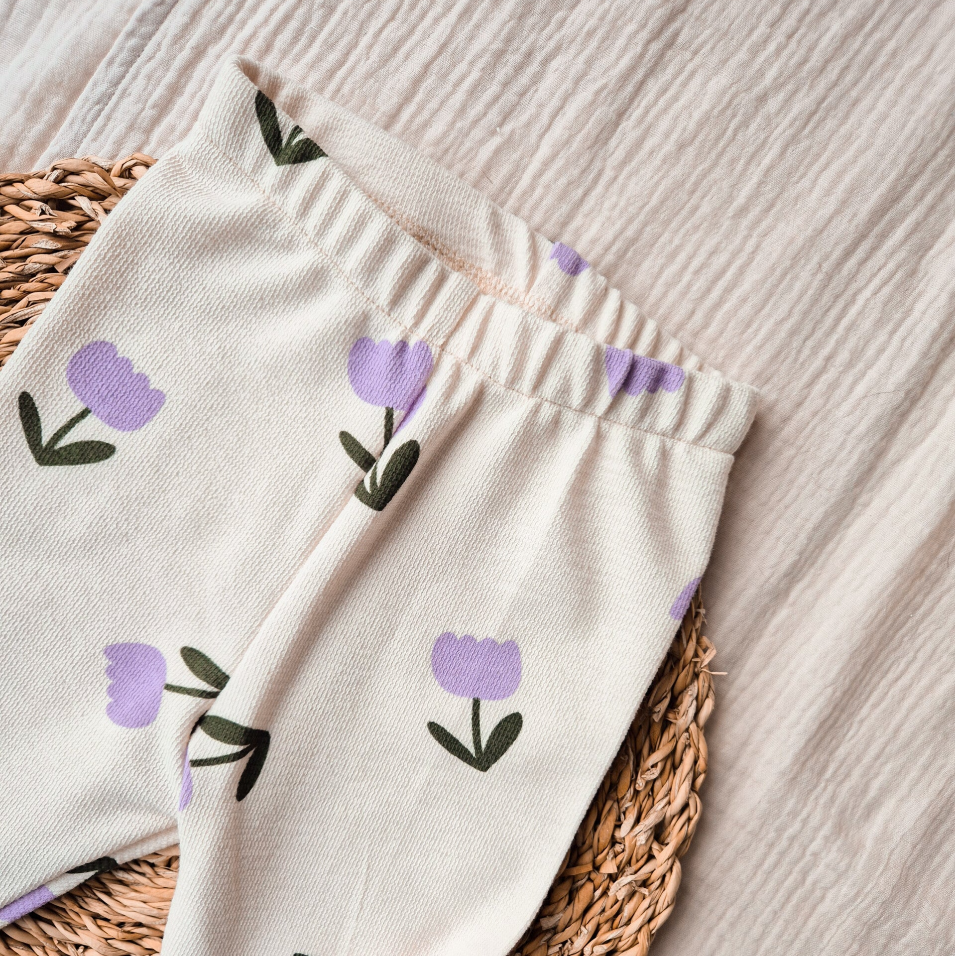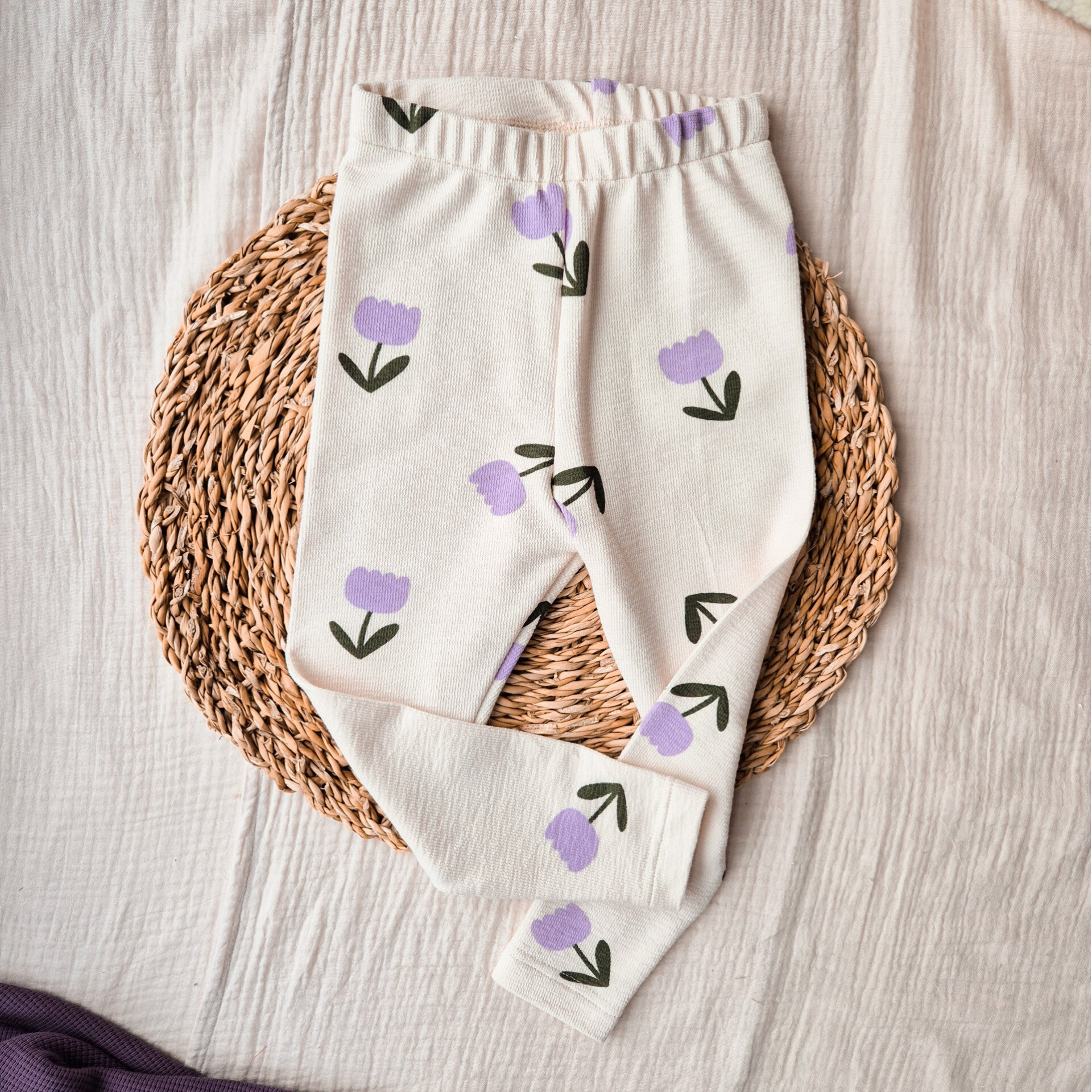 Diese zarte Leggings ist wie ein Hauch von Frühling auf der Haut. Der weiche Terry Crepe Stoff schmiegt sich sanft an die Beinchen und bietet durch seine feine Struktur nicht nur Tragekomfort, sondern auch eine stilvolle Optik. Die fliederfarbenen Blümchen tanzen verspielt über den cremefarbenen Hintergrund – ein echtes Lieblingsstück für kleine Entdeckerinnen.